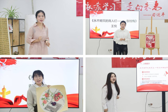 活动中,宣讲人员结合精心准备的手工和绘画作品,深情讲述张桂梅、支月英等教育家的感人事迹,分享自身学习感悟,生动诠释了新时代教师的责任与担当。