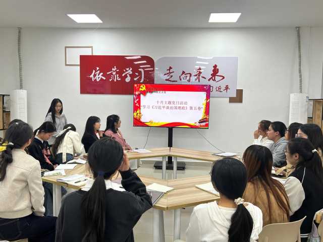 2025年10月23日晚,英语非师范党支部于北苑“一站式”学生社区综合服务中心开展主题党日学习活动,通过“分组研讨—集中汇报领学”的模式,提升学习实效。支部书记邓巧同志主持,英语非师范党支部全体党员参与。