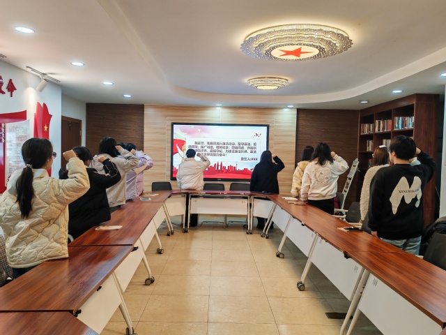活动现场,团会教室布置廉洁主题展板,全体学生面向誓词屏幕举起右手,庄严承诺坚守廉洁底线、拒绝不良风气、遵规守纪担当,以青春之力助力廉洁校园建设,现场氛围庄重肃穆,红色主题布置更添崇廉氛围。