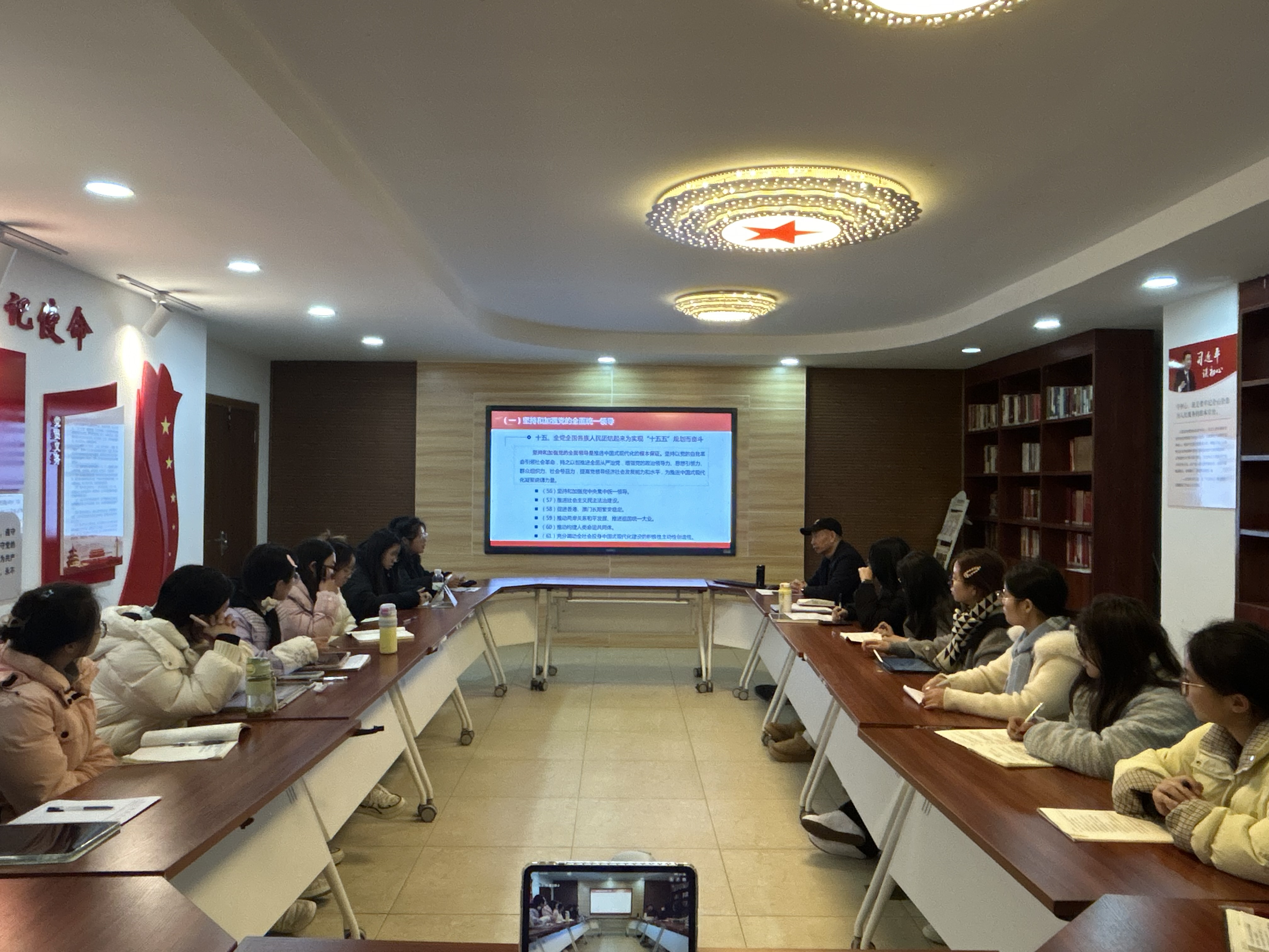 为引导党员筑牢思想根基、强化使命担当,2025年12月2日晚,外国语学院英语非师范党支部在学生社区南苑八舍党员活动室举办了专题党课学习活动。学院党委委员姚坤、党支部书记邓巧联袂授课,支部全体党员全程参与学习。