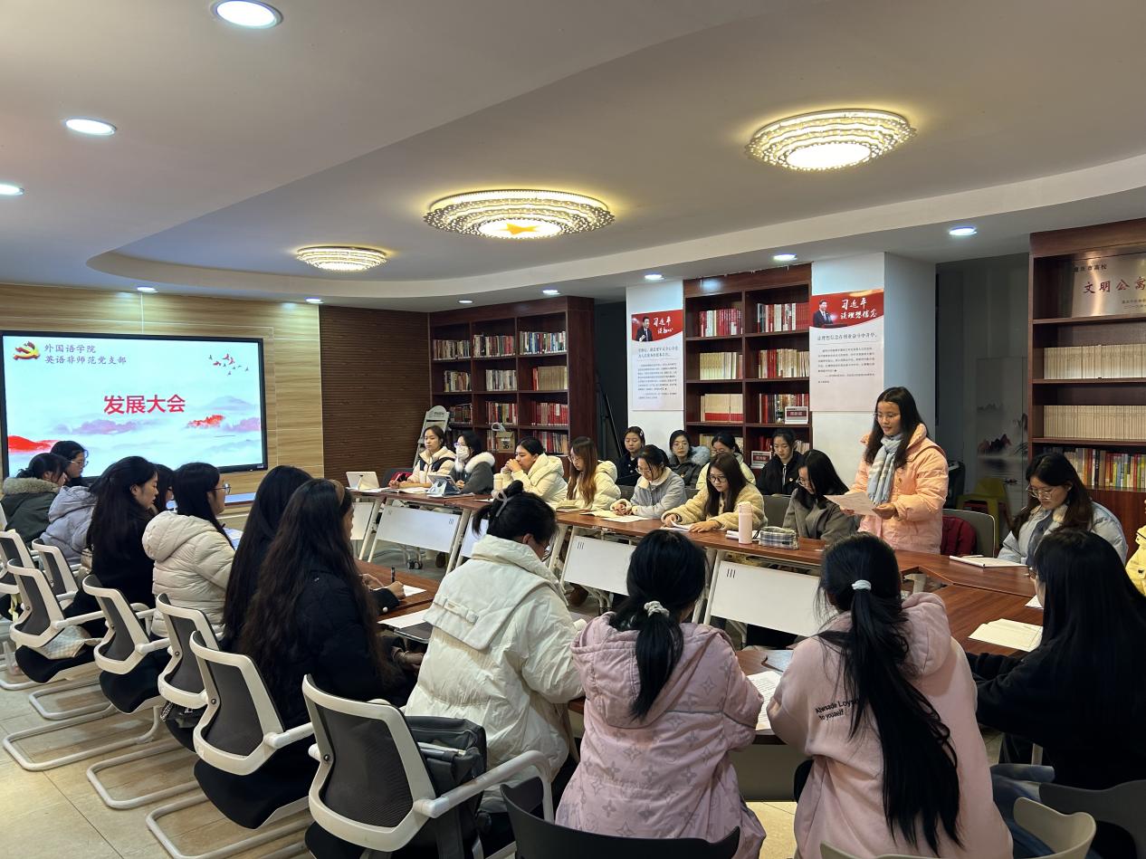 此次发展入党大会的顺利召开,不仅为英语非师范党支部注入了新的生机与活力,也进一步强化了支部的凝聚力与战斗力。下一步,支部将持续加强对新发展党员的教育培养,不断优化党员发展工作流程,为学院乃至学校的党建工作高质量发展贡献力量。