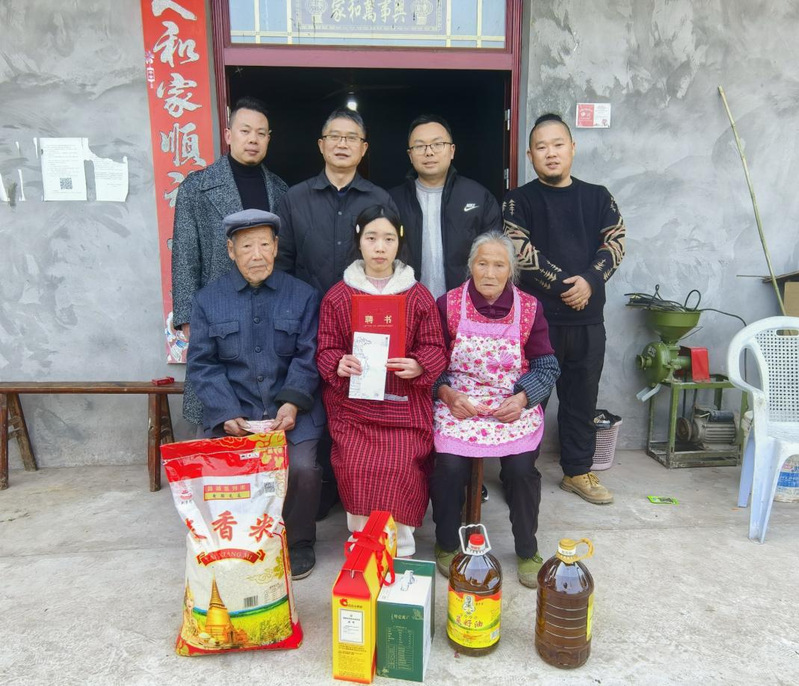 2026年2月11日,正值新春佳节前夕,长江师范学院美术学院党委书记傅小彪、团委书记洪孝兵一行,联合校友代表路人艺术及爱心企业代表邓海金,深入涪陵区清溪镇,走访慰问了美术学院2023级环境设计专业困难学生周佳珊。走访过程中,傅小彪书记一行与学生及其爷爷奶奶亲切交谈,详细询问了家庭经济来源、生活实际困难以及在校学习情况。了解到周佳珊同学自幼家庭变故,与年迈的爷爷奶奶相依为命,仅靠低保维持生计,但她依旧凭借坚韧意志专升本考入我校,并在校担任班委,乐观向上、勤学奋进,傅小彪对其自强不息的精神给予了高度肯定,并鼓励她坚定信心,用知识改变命运。